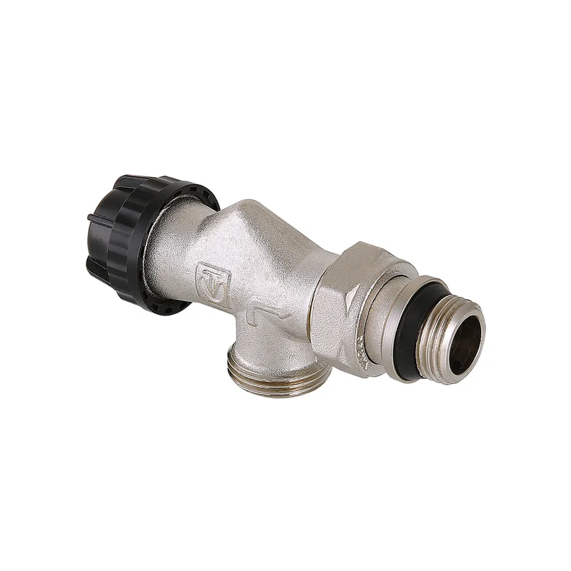Двойной угловой кран для радиатора 14561212 — однотрубный, нижнее подключение d-1/2″. Применяется в однотрубных системах отопления. Встроенный байпас обеспечивает циркуляцию теплоносителя при закрытом кране.